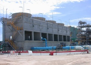 The Concrete Cooling Tower structure will be made with reinforced concrete and is suitable to resist aggressive waters. The pre- cast concrete type has been implemented to meet the stringent time to market. The shell and the structure utilize steel reinforcements bars to maintain their shape and strength. The calculation of the structure will consider the dead and live loads of the complex while running at full capacity.