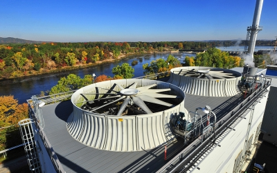 Hybrid cooling tower offers efficient cold water temperatures with reduced visible plume and enhanced water conservation.